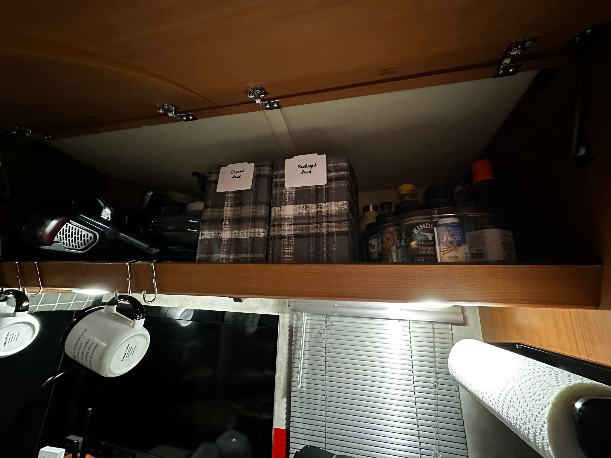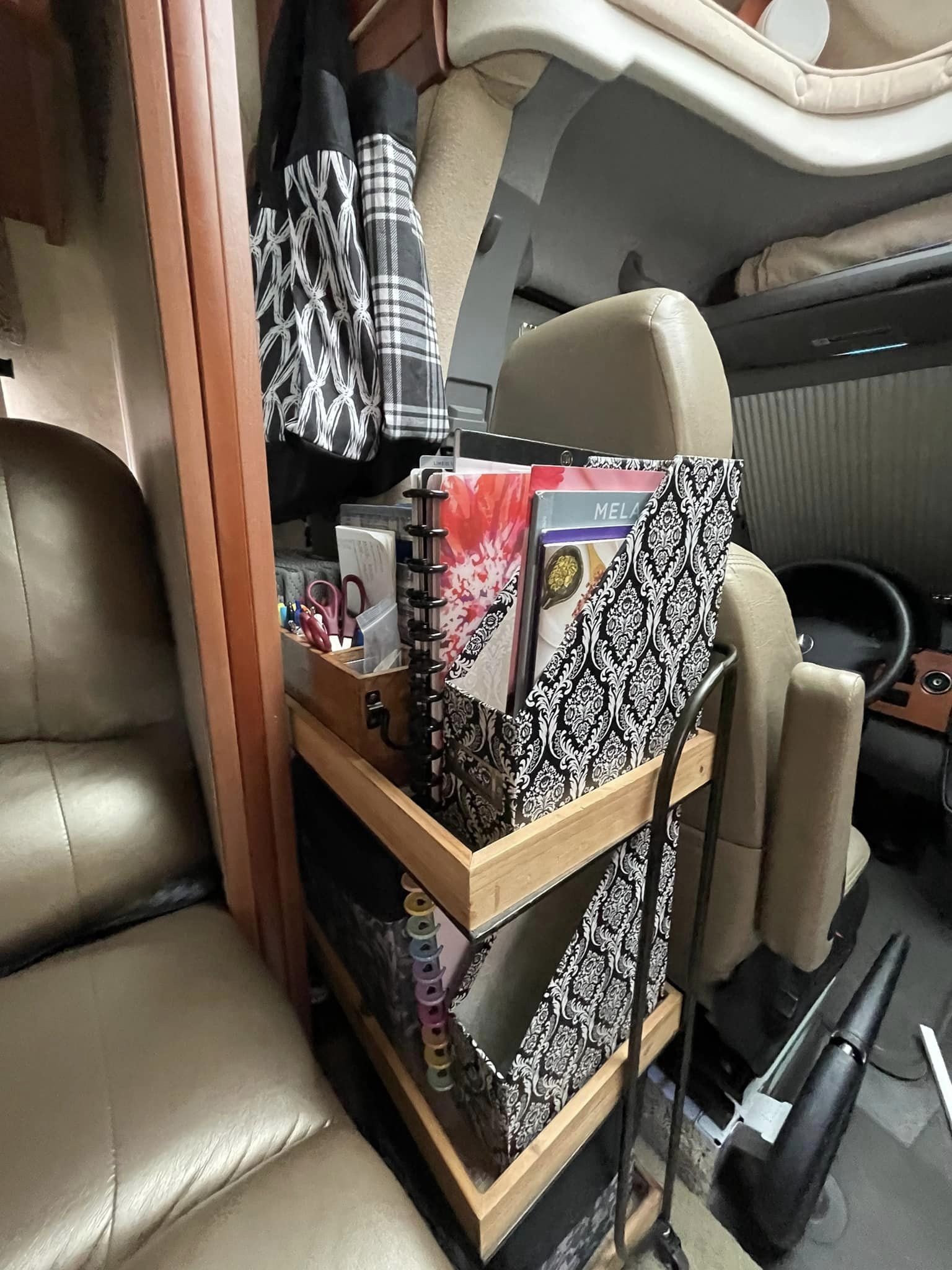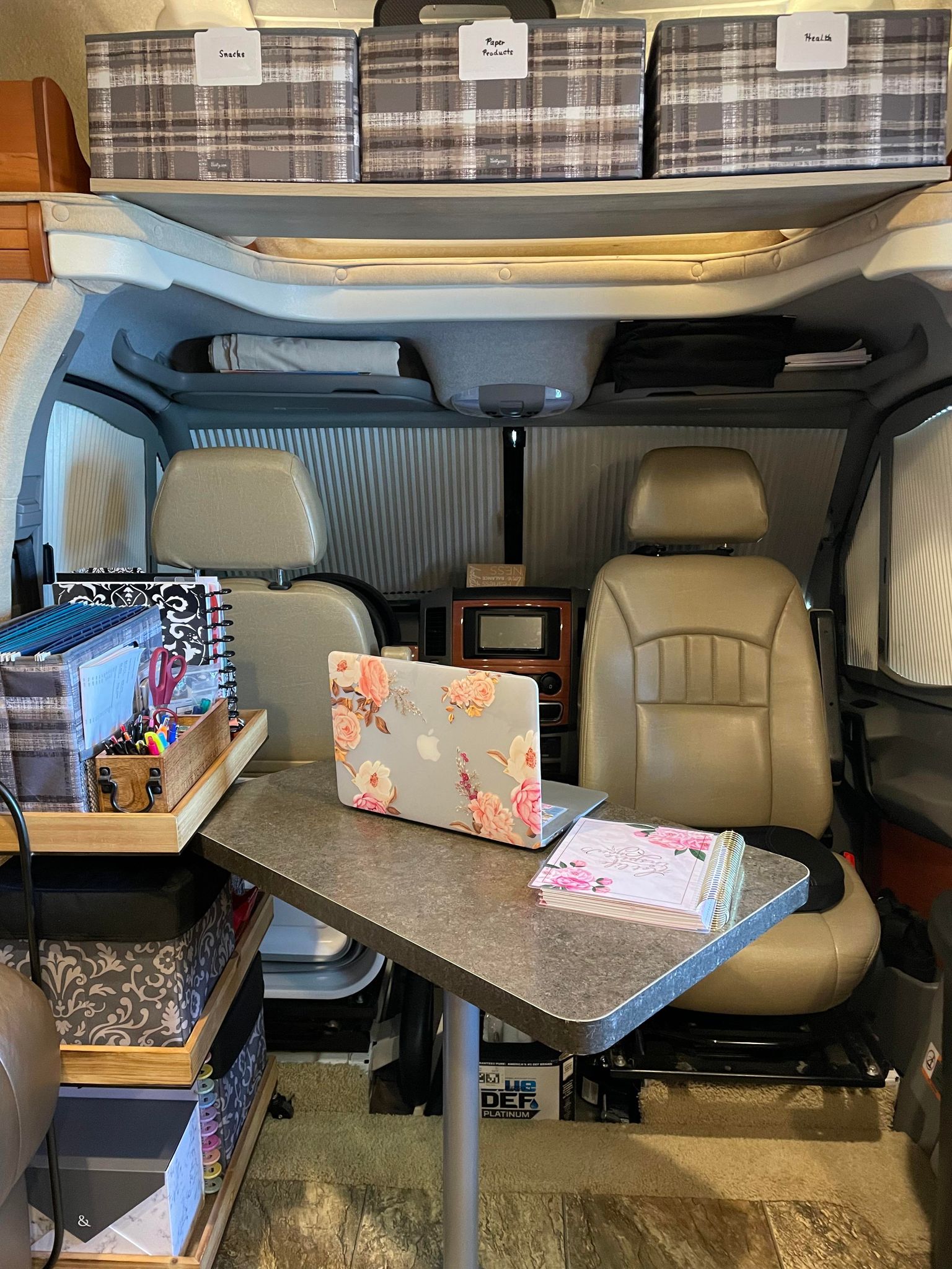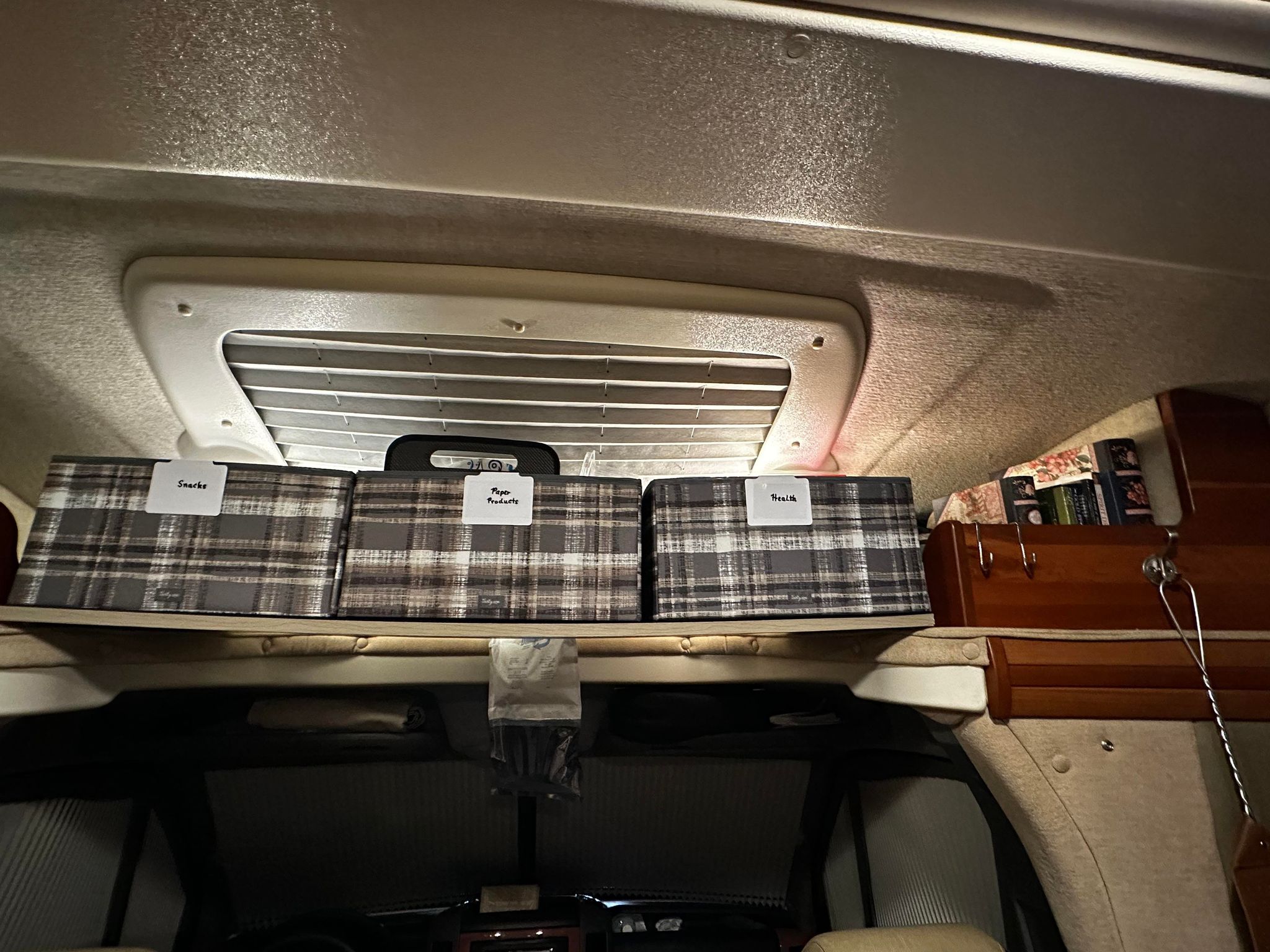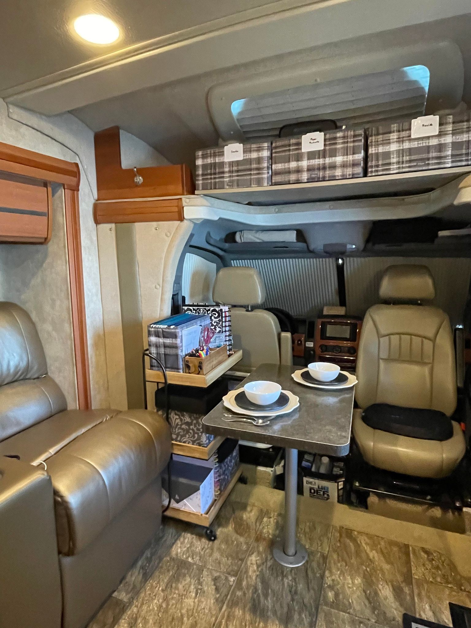 I’m sharing a few picture of our spaces in action this week. It’s been rewarding to see my preparations pay off as we made this home for a few days. I was able to complete the rest of the registration paperwork yesterday, so we finally have permanent tags on the RV. It’s taxed more like a house than a car, but we expected that – and it will be our full time home soon enough.