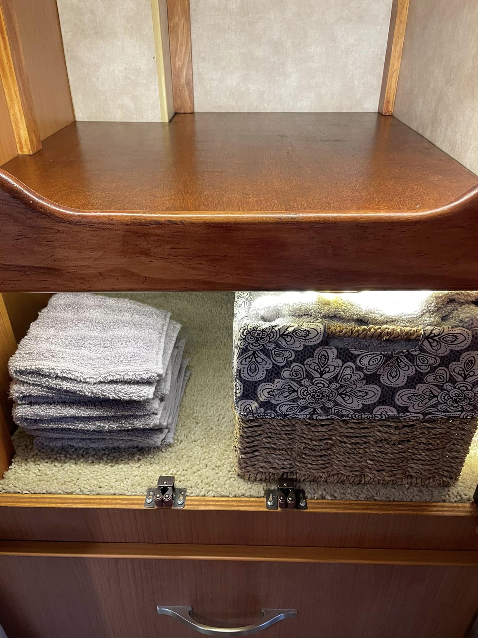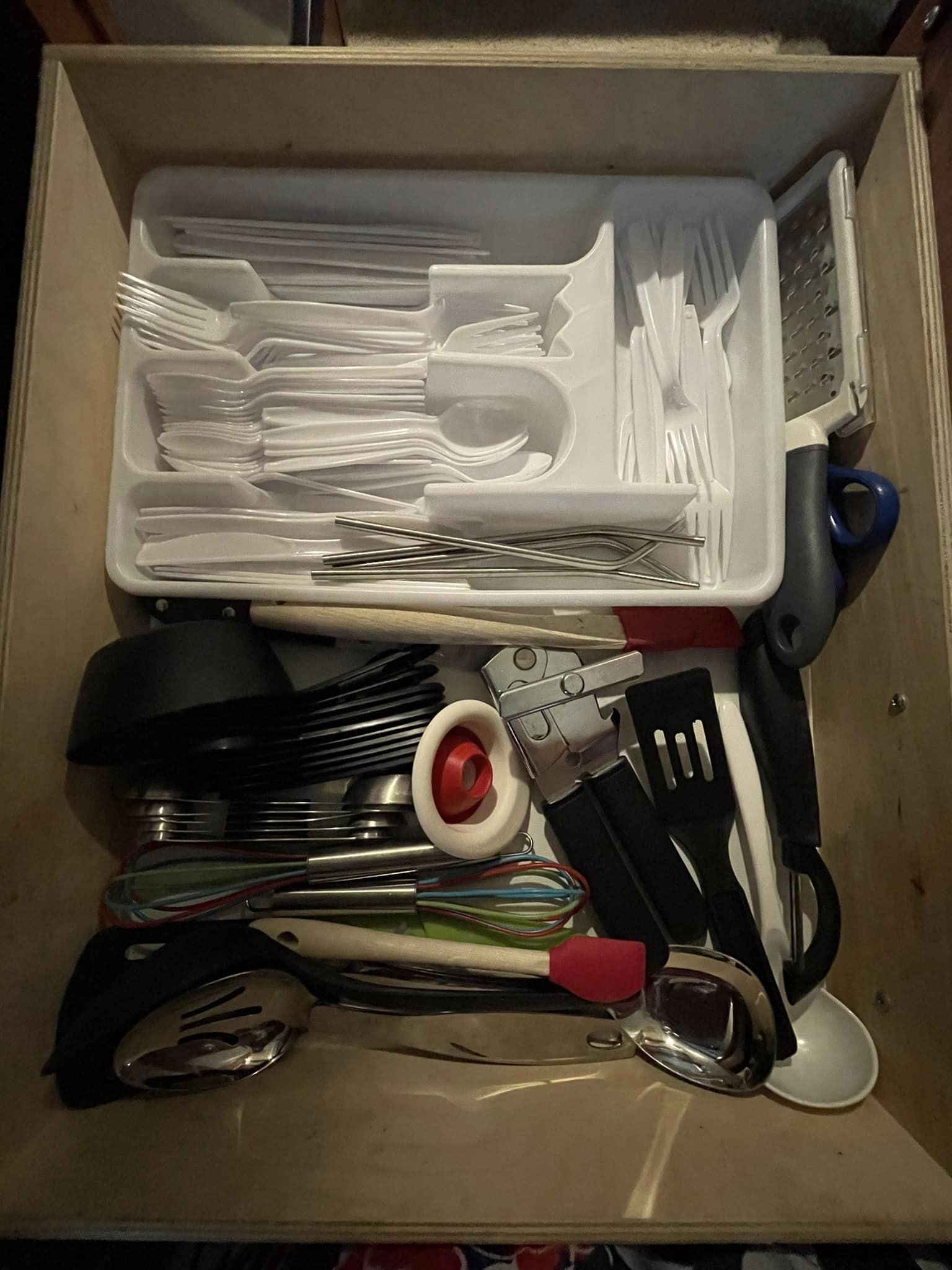 I’m sharing pictures of some of the solutions that I’ve found so far and showing you the nooks and crannies as we move in. I’ve found these type of pictures and links others have shared to be a real help as I’m making this change. I’ll also share links below – so you can buy your own solutions. These are not affiliate links. I’m just sharing because I like to share and help others. I’ve repurposed a lot of things I already had, but if I can remember where I bought it, I’ll share. If you find this helpful, I’d love to hear from you!